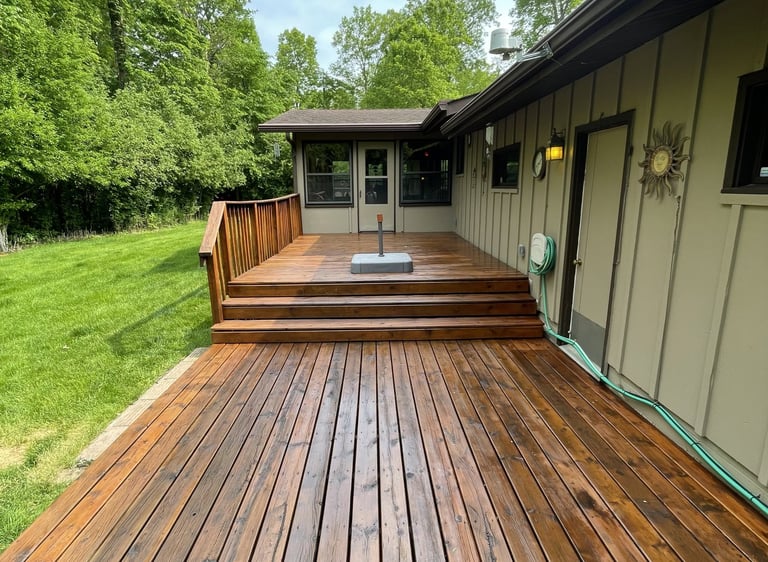 Our deck staining and sealing services prevent wood rot and UV damage caused by our harsh seasons. We perform deep pressure washing and surface prep to ensure the stain bonds perfectly, leaving you with a rich, durable finish that makes your deck the highlight of the neighborhood.